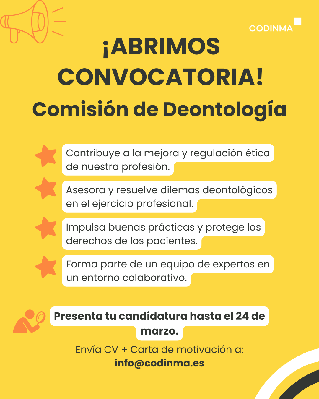 En CODINMA trabajamos para representar y defender los intereses de nuestros colegiados, garantizando el ejercicio ético y de calidad de la profesión. Nuestro objetivo último es proteger el interés público, promoviendo el derecho a la salud y contribuyendo a una asistencia sanitaria más segura y eficaz.